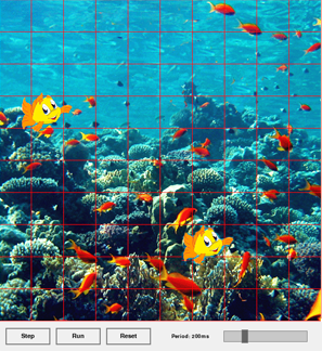 Programm: # Gg2.py from gamegrid import * # ------------- class Fish ------------------------------- class Fish(Actor): def __init__(self): Actor.__init__(self, "sprites/nemo.gif") # ---------------- main ---------------------------------- makeGameGrid(10, 10, 60, Color.red, "sprites/reef.gif") nemo = Fish() addActor(nemo, Location(1, 3)) wanda = Fish() addActor(wanda, Location(6, 7)) show() Du kannst auch mehrere Aktors der Klasse Fisch erzeugen, ohne diese einzeln zu benennen. Dann rufst du in der Funktion addActor() den Klassennamen Fisch() auf und gibt danach die gewünschte Position an. Programm: # Gg2a.py from gamegrid import * # ------------- class Fish ------------------------------- class Fish(Actor): def __init__(self): Actor.__init__(self, "sprites/nemo.gif") # ---------------- main ---------------------------------- makeGameGrid(10, 10, 60, Color.red, "sprites/reef.gif") addActor(Fish(), Location(1, 3)) addActor(Fish(), Location(6, 7)) show() |