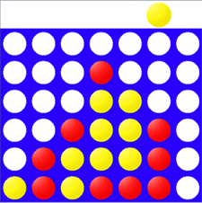 Programm: # FourInARow.py from gamegrid import * #------------- class Token ------------------- class Token(Actor): def __init__(self, player): Actor.__init__(self, "sprites/token.png", 2) self.player = player self.show(player) self.nb = 0 self.setActEnabled(False) # do not start act() yet def act(self): global activeToken, isFalling, isFinished nextLoc = Location(self.getX(), self.getY() + 1) if (getOneActorAt(nextLoc) == None and self.isMoveValid()): if self.nb == 6: self.nb = 0 self.setLocationOffset(Point(0, 0)) self.move() else: self.setLocationOffset(Point(0, 10 * self.nb)) self.nb = self.nb + 1 else: # arrived self.setActEnabled(False) # old token will stay where it is if check4Win(self.getLocation()): if self.player == 0: won = "Yellow" else: won = "Red" setTitle("Game Over, player " + won + " won!") isFinished = True else: self.player = (self.player + 1) % 2 activeToken = Token(self.player) addActor(activeToken, Location(6, 0), Location.SOUTH) activeToken.setActEnabled(False) isFalling = False def onMousePressed(e): global isFalling isFalling = True activeToken.setActEnabled(True) # start act() def onMouseMoved(e): if isFalling: return loc = toLocationInGrid(e.getX(), e.getY()) if not isFinished: activeToken.setX(loc.x) refresh() def getPlayerOfTokenAt(x, y): loc = Location(x, y) if getOneActorAt(loc) == None: return -1 else: return getOneActorAt(loc).getIdVisible() #for checking nrOfTokens (win situation: nrOfTokens = 4) def checkDiagonally1(col, row, nrOfTokens): for j in range(nrOfTokens): adjacentSameTokens = 0 for i in range(nrOfTokens): if (col+i-j) >= 0 and (col+i-j) < 7 and (row+i-j) >= 1 \ and (row + i - j) < 7 \ and getPlayerOfTokenAt(col + i - j, row + i - j) == \ getPlayerOfTokenAt(col, row): adjacentSameTokens = adjacentSameTokens + 1 if adjacentSameTokens >= nrOfTokens: return True return False def checkDiagonally2(col, row, nrOfTokens): for j in range(nrOfTokens): adjacentSameTokens = 0 for i in range(nrOfTokens): if (col - i + j) >= 0 and (col - i + j) < 7 \ and (row + i - j) >= 1 and (row + i - j) < 7 \ and getPlayerOfTokenAt(col - i + j, row + i - j) == \ getPlayerOfTokenAt(col, row): adjacentSameTokens = adjacentSameTokens + 1 if adjacentSameTokens >= nrOfTokens: return True return False def checkHorizontally(col, row, nrOfTokens): adjacentSameTokens = 1 i = 1 while col - i >= 0 and getPlayerOfTokenAt(col - i, row) ==\ getPlayerOfTokenAt(col, row): adjacentSameTokens = adjacentSameTokens + 1 i = i + 1 i = 1 while col + i < 7 and getPlayerOfTokenAt(col + i, row) ==\ getPlayerOfTokenAt(col, row): adjacentSameTokens = adjacentSameTokens + 1 i = i + 1 return adjacentSameTokens >= nrOfTokens def checkVertically(col, row, nrOfTokens): adjacentSameTokens = 1 i = 1 while row + i < 7 and getPlayerOfTokenAt(col, row + i) ==\ getPlayerOfTokenAt(col, row): adjacentSameTokens = adjacentSameTokens + 1 i = i + 1 return adjacentSameTokens >= nrOfTokens #return true, if four are connected through that token def check4Win(loc): col = loc.x row = loc.y return (checkVertically(col, row, 4) or checkHorizontally(col, row, 4) or checkDiagonally1(col, row, 4) or checkDiagonally2(col, row, 4)) # ---------------- main ---------------------- makeGameGrid(7, 7, 70, None, "sprites/connectbg.png", False, mousePressed = onMousePressed, mouseMoved = onMouseMoved) setBgColor(makeColor("white")) isFalling = False activeToken = Token(0) isFinished = False addActor(activeToken, Location(0, 0), Location.SOUTH) setSimulationPeriod(30) addStatusBar(30) setTitle("Move mouse to a column and click to set the token.") show() doRun() |