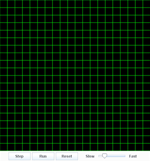 Die Grösse und das Erscheinungsbild des Fensterls wird durch die Wahl der Parameter im Befehl makeGameGrid() festgelegt. makeGameGrid(nbHorzCells, nbVertCells, cellSize, color) erzeugt ein Spielfenster mit der gegebenen Anzahl horizontalen und vertikalen Zellen, Zellengrösse, mit sichtbaren Gitterlinien in gegebener Farbe und Navigationsbalken. makeGameGrid(nbHorzCells, nbVertCells, cellSize, None, bgImage, False) erzeugt ein Spielfenster ohne Gitterlinien, mit Hintergrundbild und ohne Navigationsbalken. |