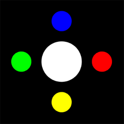 Step 2: Use the mouse to switch on the lamp in 4 colours def onMousePressed(x,y): if getPixelColorStr(x, y) == "red": buttonIndex = 0 elif ... elif getPixelColorStr(x, y) == "white": buttonIndex = -1 else: buttonIndex = -2 if buttonIndex >= 0: showLamp(buttonIndex) def onMouseReleased(x,y): showLamp(-1) makeGPanel(-200, 200, -200, 200, mousePressed = onMousePressed, mouseReleased = onMouseReleased)