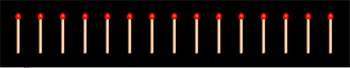 15 Zündhölzer sind im Gitter angeordnet. Mit Mausklick kannst du einzelne Zündhölzer wegnehmen. Um die hohen Zündhölzersprites im quadratischen Gitter zu positionieren, verwendest du jeweils eine horizontale und 7 vertikalen Zellen und berechnest ihre Position. In der Callbackfunktion pressCallback() lässt du den Actor, der sich in der Zelle des Mausklicks befindet, mit actor.removeSelf() verschwinden.