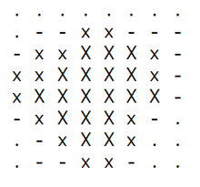 Programm: from mbrobot_plusV3 import * def readData(): data = getDistanceList() matrix = [] for row in range(8): rowData = [data[row * 8 + col] for col in range(8)] matrix.append(rowData) return matrix def showMap(matrix): for row in matrix: line = "" for val in row: if val < 30: line += " X " elif val < 60: line += " x " elif val < 100: line += " - " elif val < 150: line += " . " else: line += " " print(line) print("") print("------------------------------") print("") while True: matrix = readData() showMap(matrix) delay(3000) |