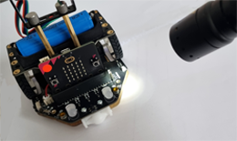Die Änderungen des Widerstands werden vom micro:bit erfasst und in einen digitalen Wert im Bereich von 0 bis 1023 umgewandelt, wobei 0 sehr dunkel und 1023 sehr hell bedeutet. Die Sensoren befinden sich vorne links und rechts am Chassis. |
